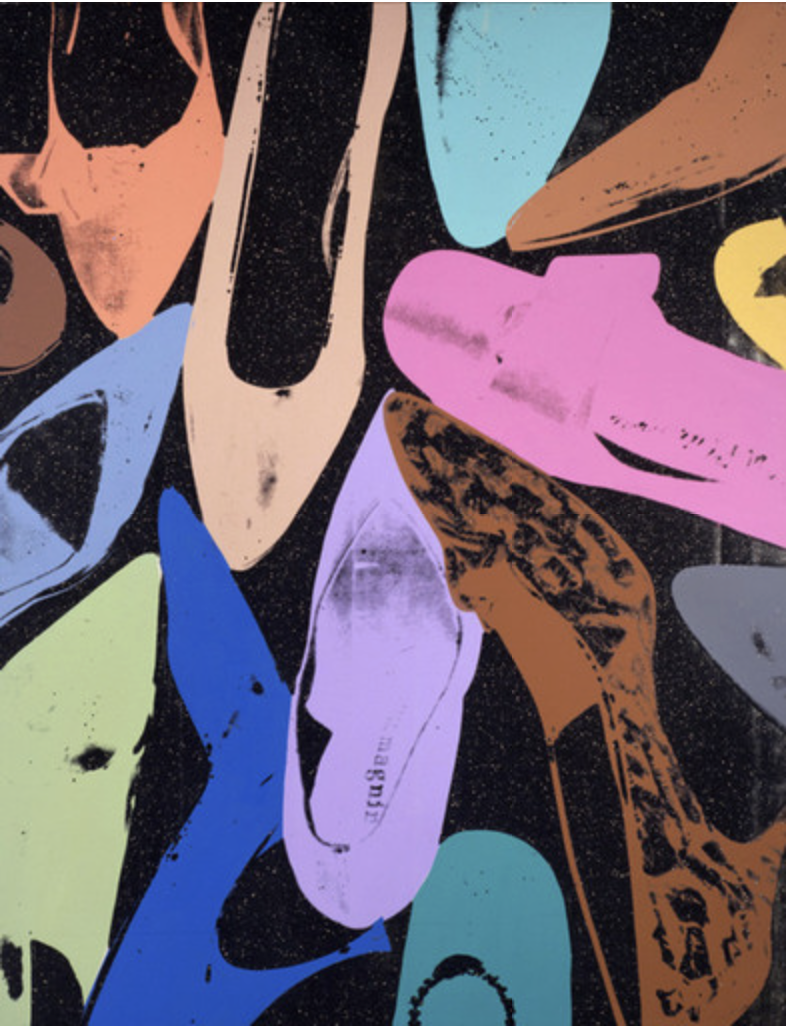 Andy Warhol; pop art; women's shoes; painting; diamond dust; silkscreen ink