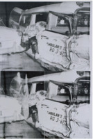 The Death and Destruction, Death in America, or Death and Disasters series (its name changed and varied depending on the source) was one of Warhol's most impactful series. As with much of Warhol's work, repetition is a major feature: the same image is often repeated multiple times in a single piece, mirroring the omnipresence of such imagery in the media and having a desensitising effect on the viewer. He also often employed bright, incongruous colours in these works, contrasting the grim subject matter with his pop sensibility. The series can be seen as a commentary on the way the media presents and consumes tragedy. Warhol seemed to be making a statement about the detached and mechanical way in which society encounters and processes these horrific events. By presenting them in a repeated and almost commercial format, he raises questions about desensitisation of the public and the nature of celebrity. Furthermore, the subject matter encapsulates the apocalyptic fears of the Cold War generation in the United States.