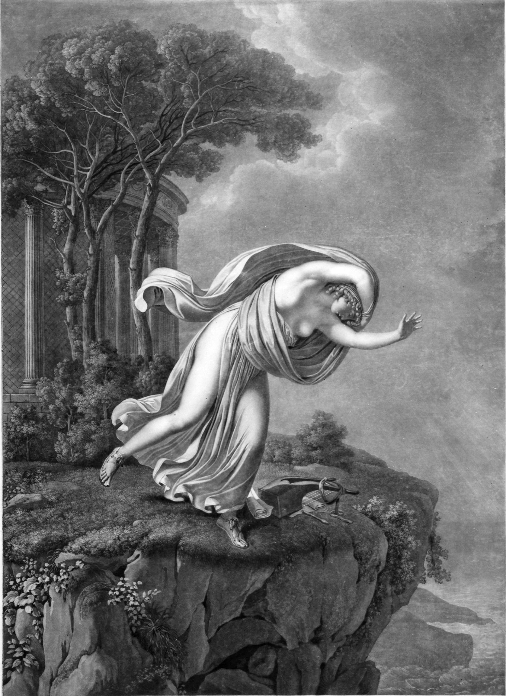 Sappho; cliff; Leucas; tragedy; death; suicide; fall; Phaon; literature; landscape; print