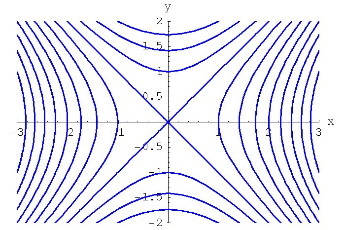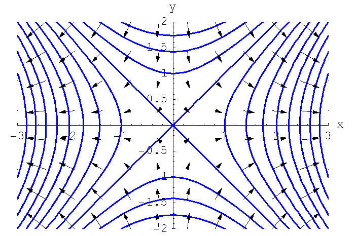\(\nabla f(x, y) = \langle x, -y \rangle \in \mathbb{R}^2\).
